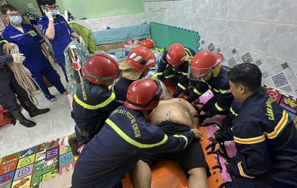 Nạn nhân là anh V.X.C. (SN 1987). Người nhà cho hay, anh C. bị liệt nửa người nặng gần 150kg không thể tự di chuyển được, sống thường xuyên trên lầu 3 của căn nhà. Phát hiện anh C. bị tai biến, người trong nhà không thể di chuyển được anh C. xuống đất nên gọi điện báo với đội cứu hộ.