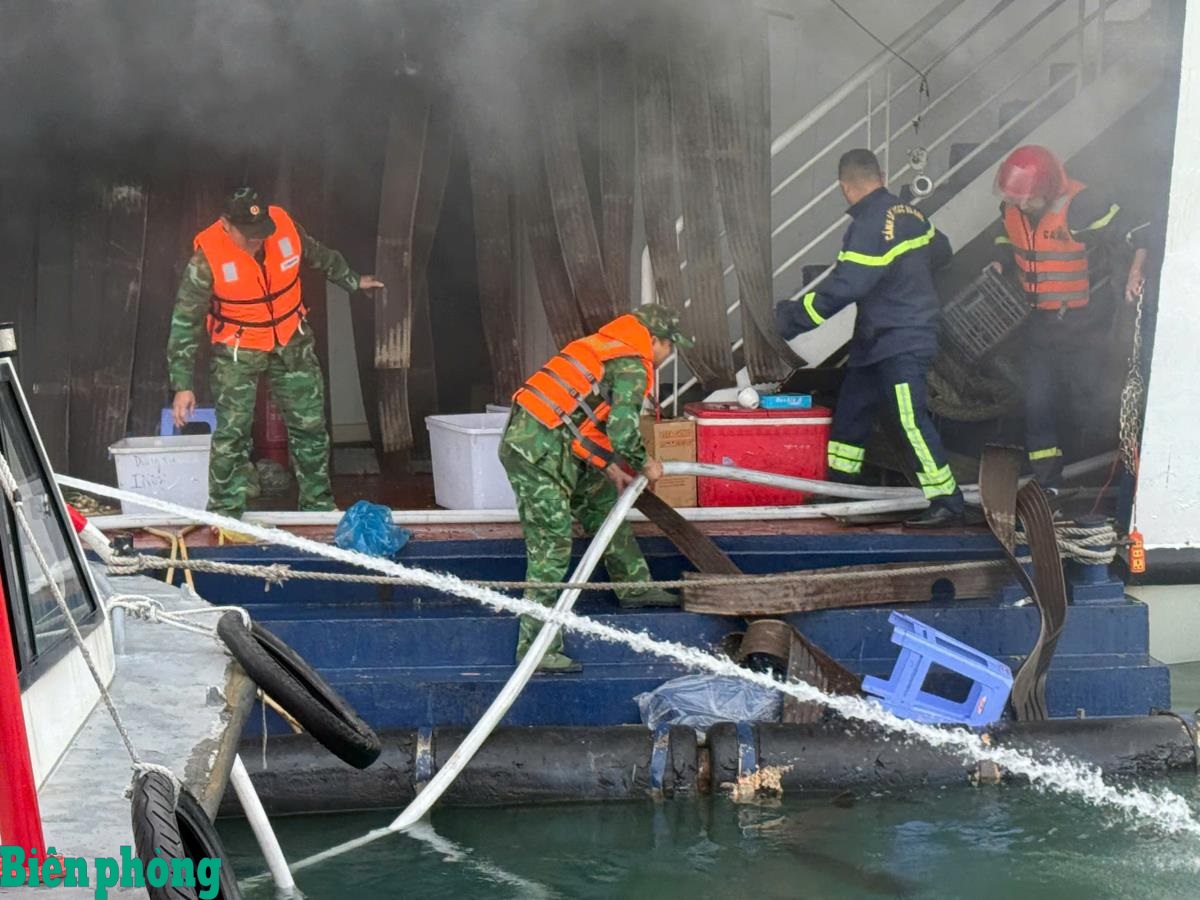 Ngay sau khi tiếp nhận thông tin, Đồn Biên phòng Cát Bà đã điều động xuồng máy B 02-10-19 và 9 cán bộ, chiến sĩ cơ động ra hiện trường, phối hợp chặt chẽ cùng Cảnh sát Phòng cháy chữa cháy Công an đặc khu Cát Hải và các phương tiện đang hoạt động tại khu vực lân cận tổ chức di dời toàn bộ du khách, nhân viên lên bờ an toàn và tích cực chữa cháy cứu tàu.