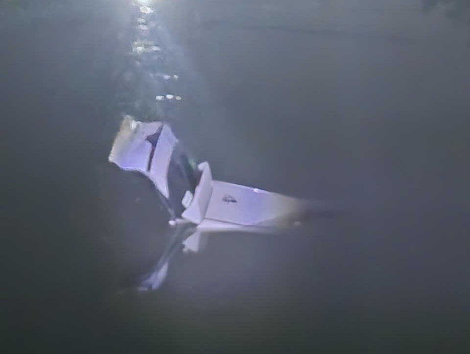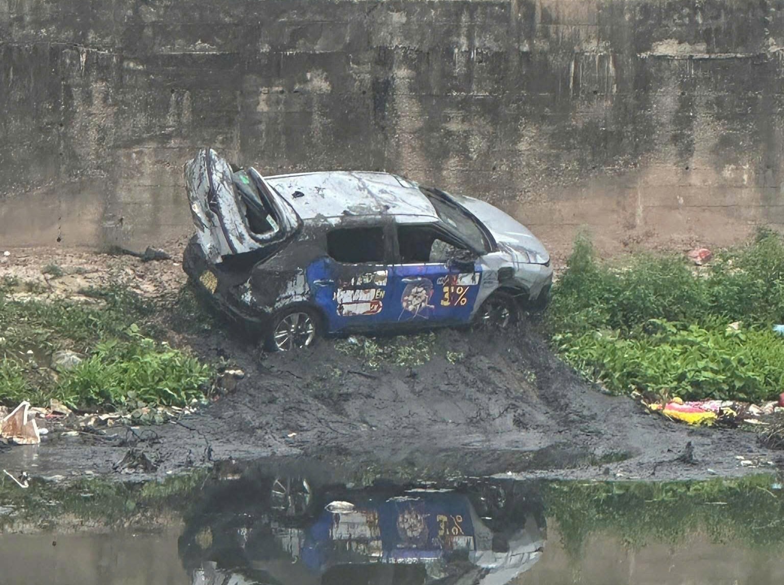 Xe ô tô thời điểm ở dưới sông Nhuệ, rạng sáng 31-1. Ảnh: VQ
