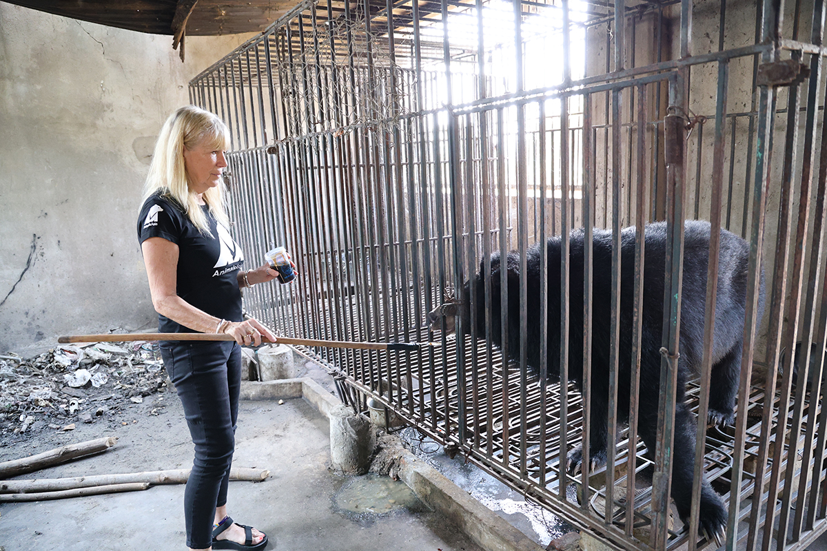Tiến sĩ Jill Robinson MBE, Nhà sáng lập kiêm Tổng giám đốc Tổ chức Động vật châu Á cho gấu ăn.
