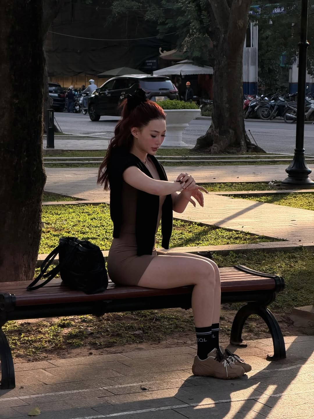 Mới đây, cô nàng cựu hot girl Hà thành Sun HT đã "đốt mắt" cộng đồng mạng khi chia sẻ loạt ảnh diện trang phục tập ôm sát cơ thể, khoe trọn đường cong quyến rũ khi dạo phố. (Ảnh: IGNV)