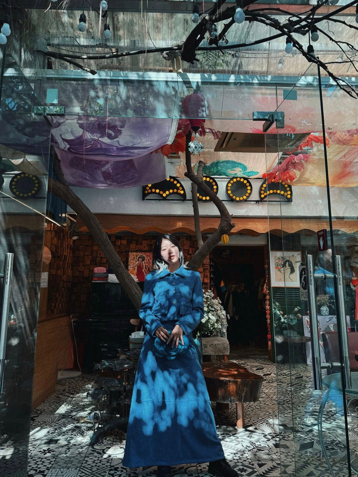 Ở một số khung hình khác, Mi Vân chọn trang phục màu xanh với chất liệu chần bông trẻ trung, giúp tôn lên vóc dáng gọn gàng và đôi chân thon. Thần thái tự tin, ánh mắt trong trẻo cùng phong cách thời trang tinh tế cho thấy cô nàng vẫn giữ được đẳng cấp của một trong những hot girl đời đầu nổi tiếng nhất Hà thành.