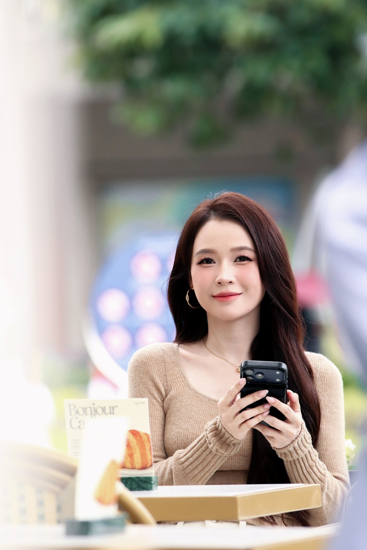 Trong bộ ảnh mới, Sam gây ấn tượng với phong cách tối giản nhưng vô cùng tinh tế. Gương mặt xinh đẹp, trẻ trung với làn da trắng mịn, đôi má hồng nhẹ và ánh mắt trong trẻo, mang lại cảm giác thanh lịch nhưng vẫn tươi tắn.