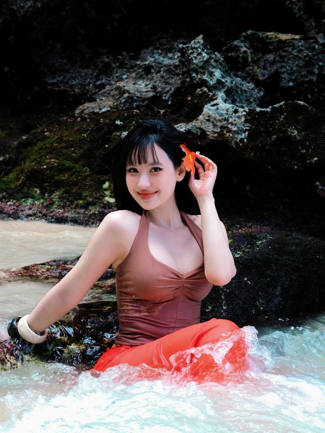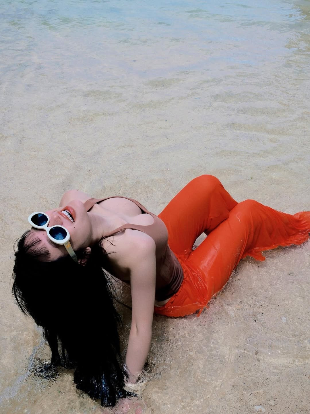 Ở vài khoảnh khắc, Vân Tiny tạo dáng trên bãi cát hoặc giữa làn nước trong veo, khoe visual ngọt ngào, đôi mắt long lanh và nụ cười nhẹ nhàng làm “đốn tim” người xem.