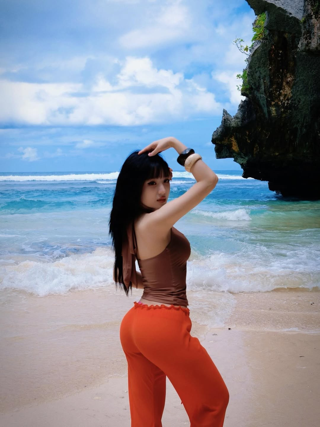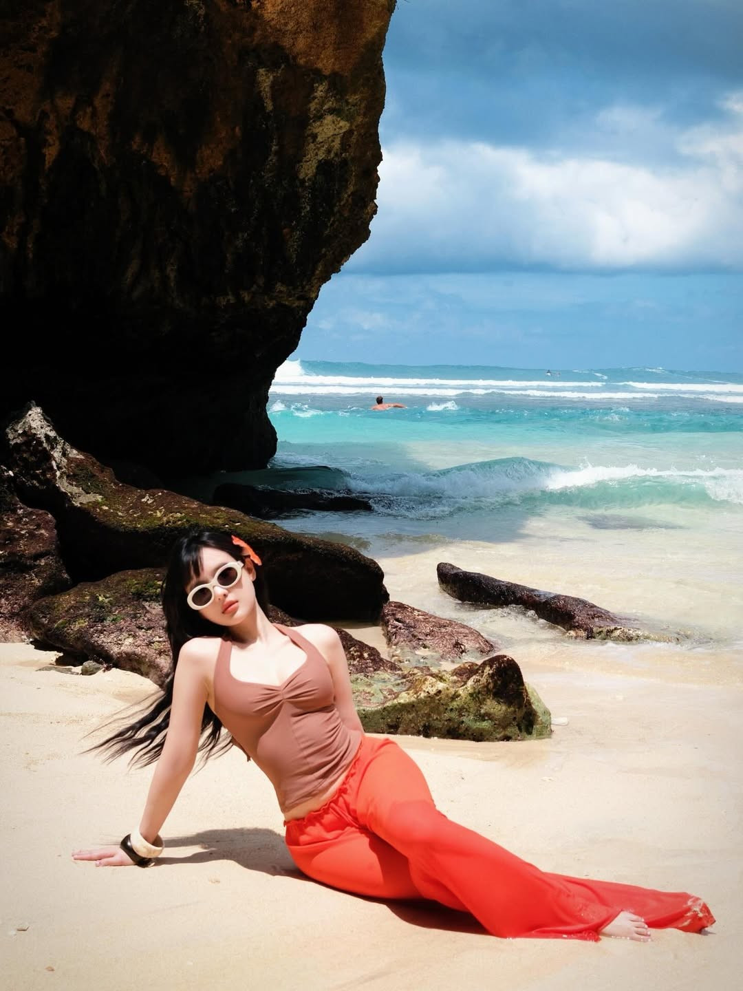 Qua những hình ảnh mới được đăng tải, Vân Tiny xuất hiện với mái tóc dài buông xõa tự nhiên, đôi lúc còn hơi ướt trong ánh nắng tạo nên thần thái vô cùng cuốn hút. Làn da trắng mịn đặc trưng của hot girl đời đầu càng nổi bật hơn khi được ánh sáng tự nhiên của biển trời Bali bao phủ.