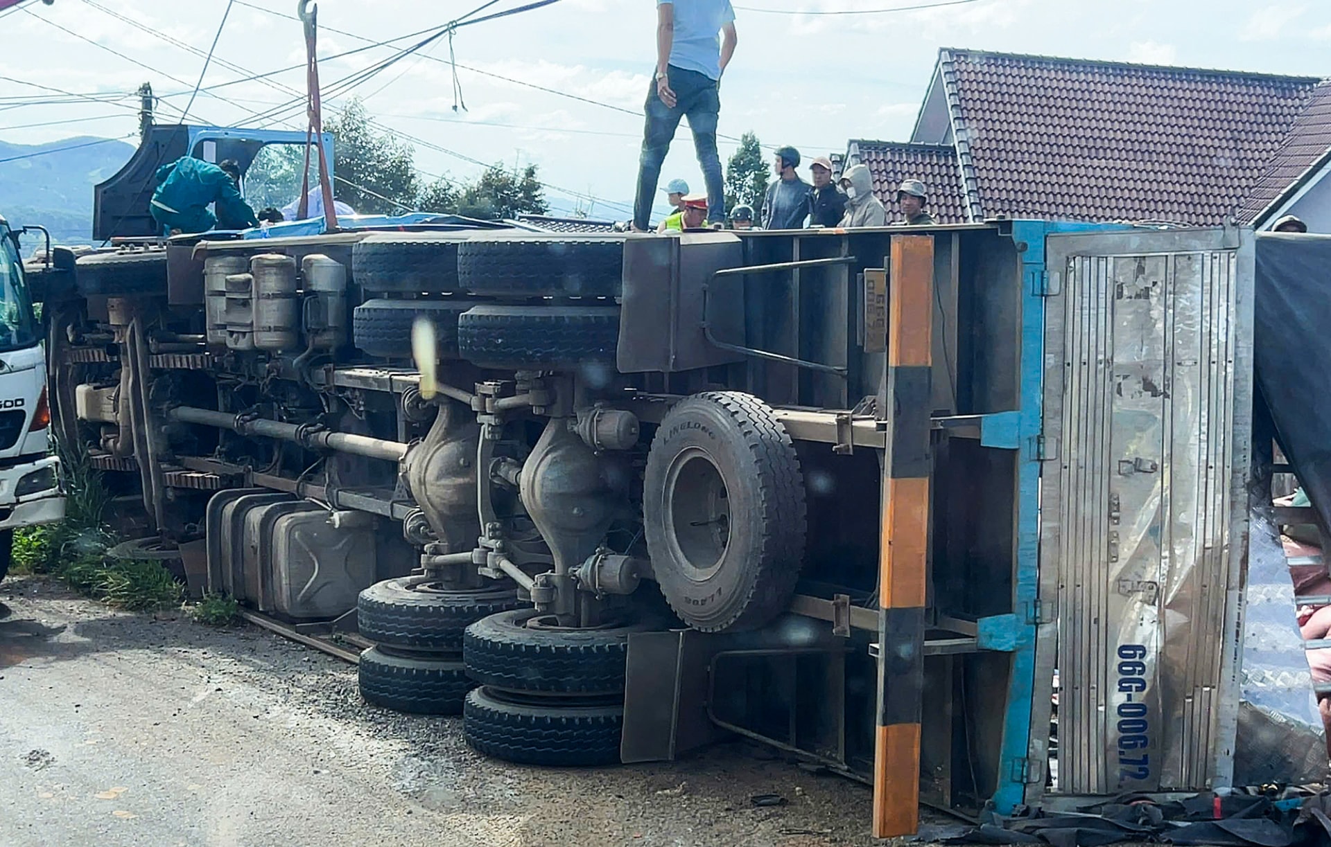 Theo tin từ Đội Chữa cháy và Cứu nạn cứu hộ khu vực 2, khoảng 9 giờ 30 phút cùng ngày, đơn vị nhận được tin báo của Công an xã Phú Sơn Lâm Hà về việc xe tải mang biển kiểm soát 66G-006.xx bị lật tại khu vực đầu đèo Phú Sơn. Thời điểm xảy ra tai nạn, tài xế và phụ xe bị mắc kẹt trong cabin xe.