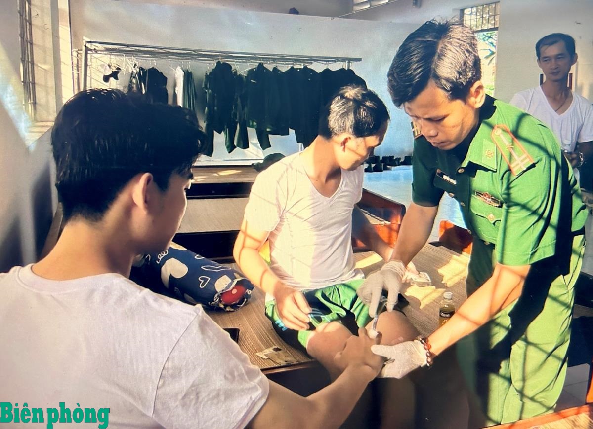 Cán bộ quân y sơ cứu ban đầu cho các thuyền viên. Ảnh: Sĩ Đan