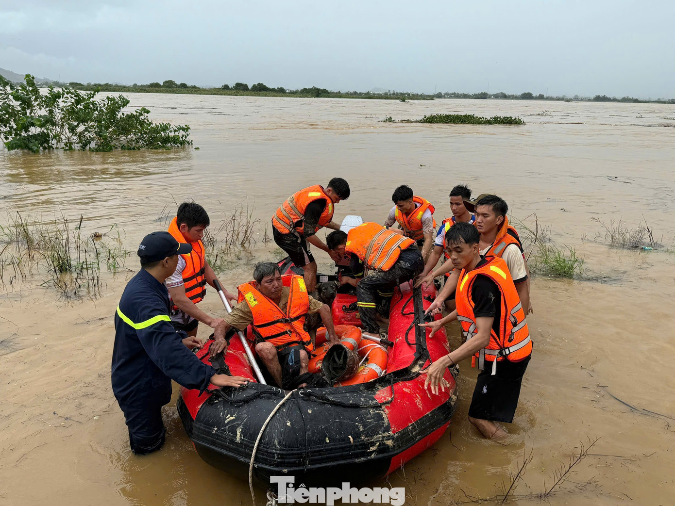Sau nhiều phút vượt dòng nước chảy mạnh, các chiến sĩ đã tiếp cận và đưa được ông H. vào bờ an toàn. Tuy nhiên, tài sản là những con bò đã bị nước lũ chảy xiết cuốn trôi.