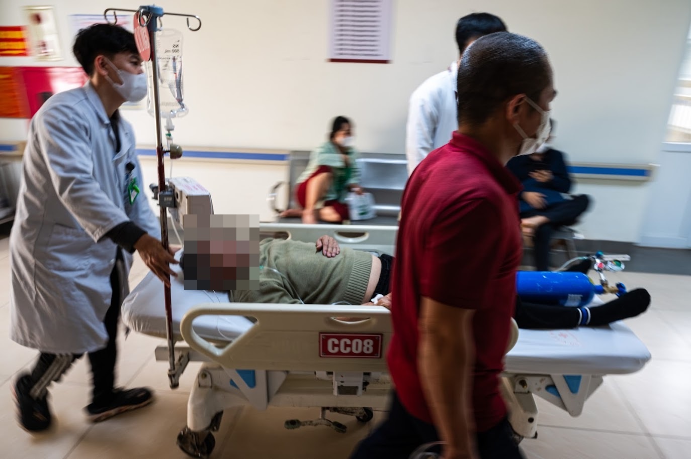 Được đồng nghiệp đưa vào Bệnh viện Thanh Nhàn, người đàn ông này gần như bất tỉnh, chỉ thở gấp và tím tái. Ảnh minh họa: Đinh Hà.