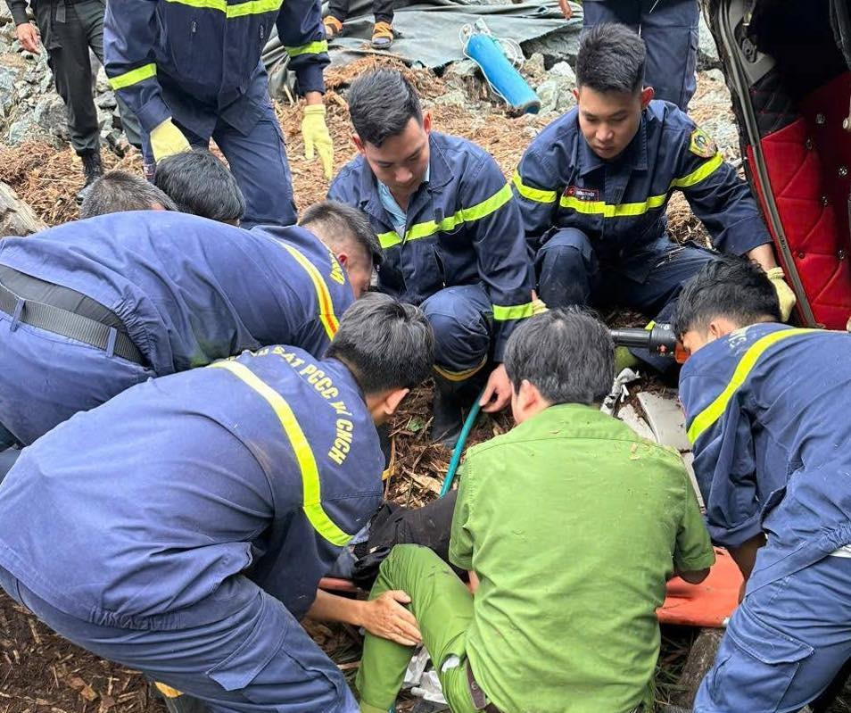 Lực lượng cứu nạn, cứu hộ dùng phương tiện chuyên dụng cắt cabin cứu nạn nhân.