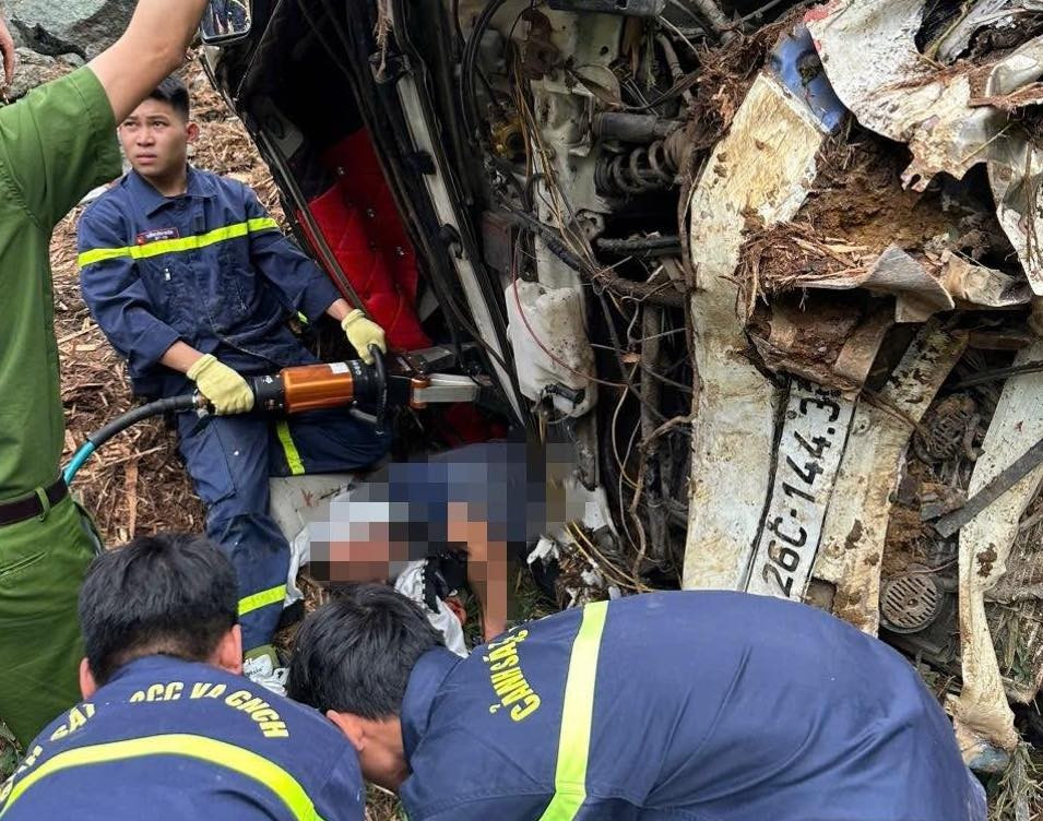 Thời điểm xảy ra tai nạn, trên xe có 3 người. Lái xe và chủ hàng may mắn thoát ra ngoài, còn một người ngồi ghế phụ bị mắc kẹt trong cabin.