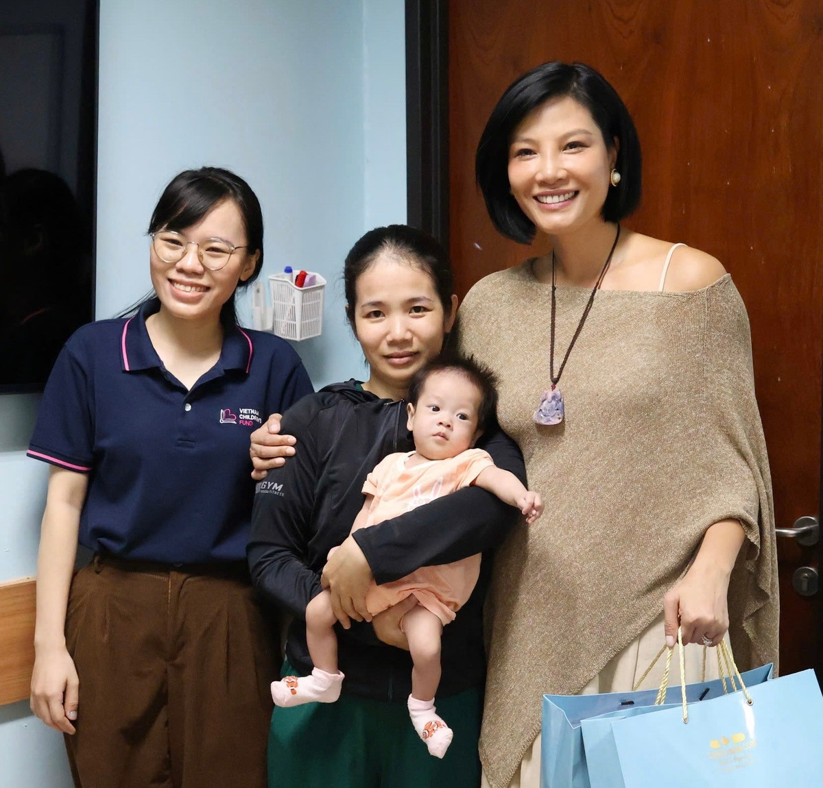 Cựu siêu mẫu Vũ Cẩm Nhung thăm các em bé vừa trải qua ca mổ tim, thông qua chương trình Vết sẹo cuộc đời. Ảnh: NVCC