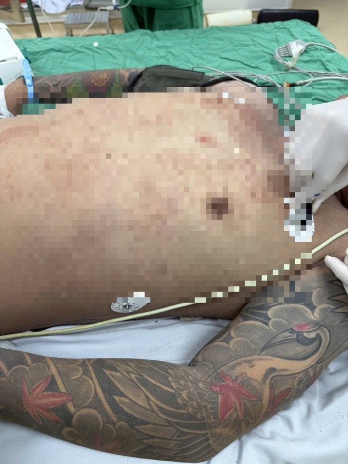 Trước đó, khoảng 22 giờ 15 phút ngày 13-2, bệnh nhân T. (SN 2000, ngụ xã Hàm Thuận, tỉnh Lâm Đồng) được đưa đến Bệnh viện Đa khoa Bình Thuận trong tình trạng nguy kịch với vết thương thấu ngực, xuyên xương ức, thủng tâm nhĩ phải. Bệnh nhân thở yếu, mạch nhanh, huyết áp tụt, nguy cơ tử vong rất cao.