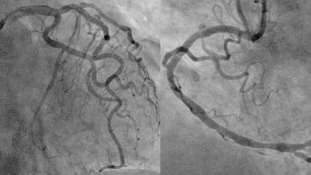 Bệnh nhân sau đó được đưa đến phòng DSA để được chụp động mạch vành cấp cứu. Kết quả chụp mạch vành cho thấy tắc hoàn toàn động mạch mũ, hẹp nặng động mạch liên thất trước và vành phải.