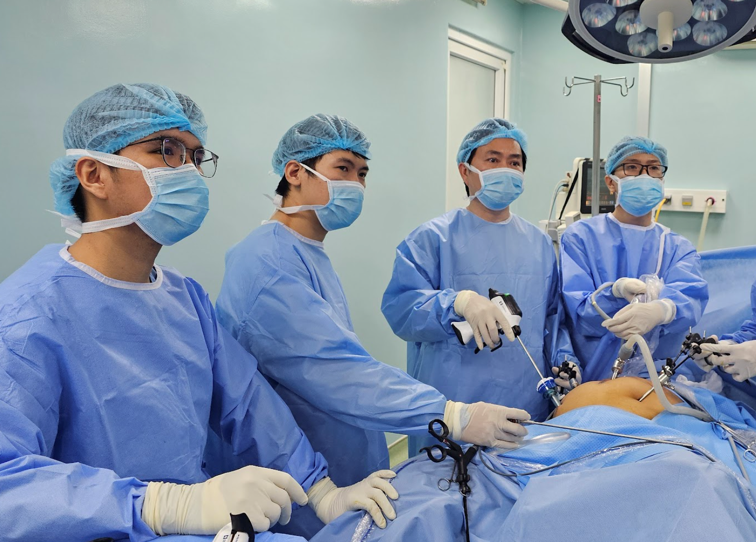 Trước nguy cơ tử vong cao, ê-kíp quyết định phẫu thuật nội soi cấp cứu để tìm nguồn chảy máu. Ca mổ có sự phối hợp của nhiều chuyên khoa: Ngoại tổng quát, Nội soi tiêu hóa, Gây mê hồi sức và Hồi sức tích cực.