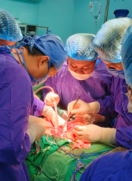 Ê-kíp thực hiện phẫu thuật cho cụ ông có ca bệnh kép hiếm gặp.