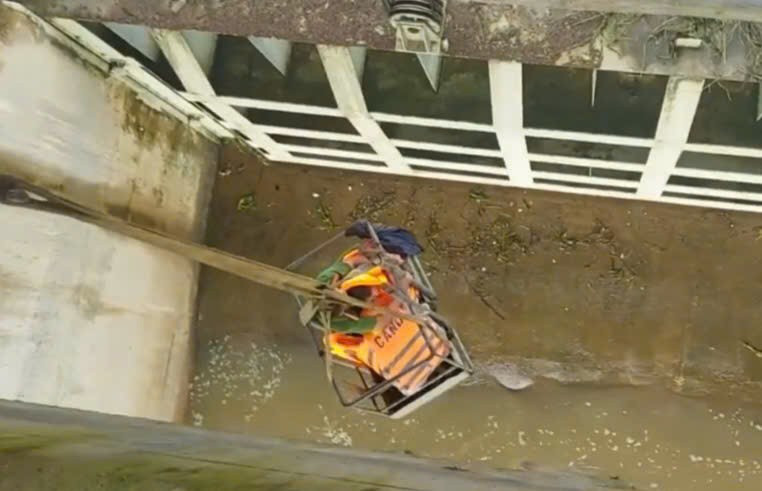 Do nước sông dâng cao sau nhiều ngày mưa, lực lượng Công an đã huy động xe tải gắn cẩu đến hiện trường để đưa nạn nhân từ thành đập lên cầu. Đồng thời, Công an xã phối hợp với Trung tâm Y tế Tây Sơn để bố trí phương tiện và nhân viên y tế để nhanh chóng tiếp nhận, hỗ trợ nạn nhân.