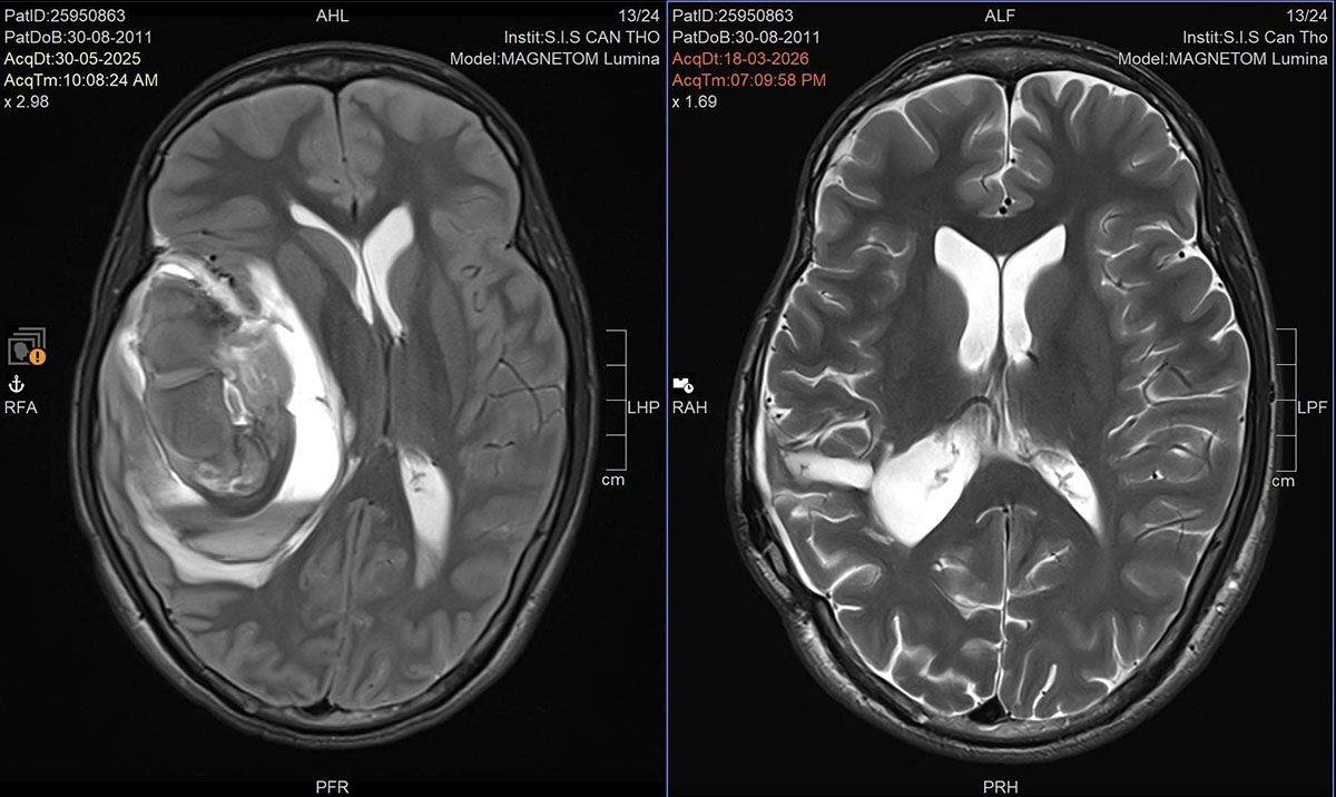 Và một năm qua, hai tay em T. vận động bình thường, trí nhớ ổn định, chân chỉ còn yếu nhẹ, không còn bị những cơn đau đầu như trước nữa. Với tình trạng hồi phục tích cực hiện tại, các bác sĩ đánh giá em hoàn toàn có thể quay lại trường lớp trong năm học 2026–2027.