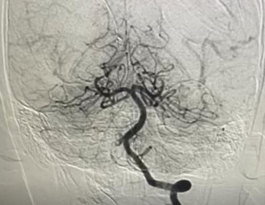 BS-CKII Trần Công Bảo Phụng cùng ê-kíp đã luồn ống thông theo đường động mạch đùi đến động mạch đốt sống, dùng thuốc tiêu sợi huyết tại chỗ kết hợp hút huyết khối, tái thông hoàn toàn mạch máu não cho bệnh nhi.
