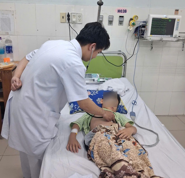 Trẻ được chẩn đoán ban đầu là viêm túi mật và được điều trị bằng kháng sinh, dịch truyền, thuốc hạ sốt. Đến chiều 19/3, trẻ xuất hiện buồn nôn, nôn, đau tức ngực vùng trước tim, cảm giác khó thở, mạch chậm, tĩnh mạch cổ nổi khi nằm…