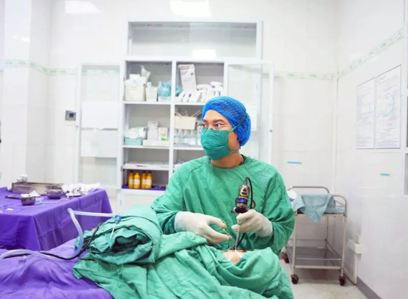 Bác sĩ phẫu thuật cho bệnh nhi/Ảnh Bệnh viện Sản Nhi Quảng Ninh