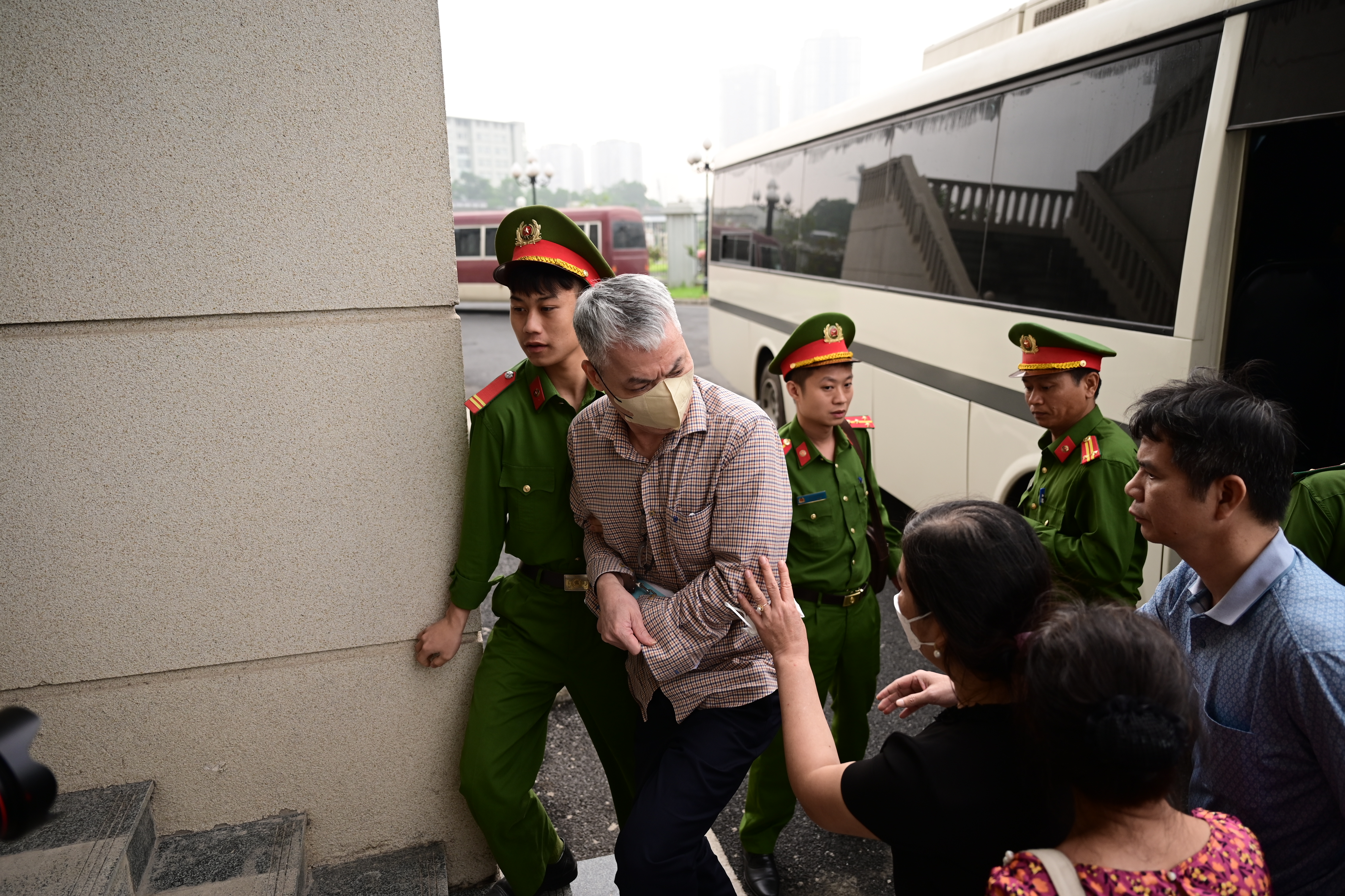 Theo ghi nhận, khoảng 8 giờ 20, 2 ô tô chở các bị cáo đến tòa. Trong số này, có 3 bị cáo được tại ngoại, 20 bị cáo còn lại bị tạm giam tại Trại tạm giam T16, Bộ Công an.