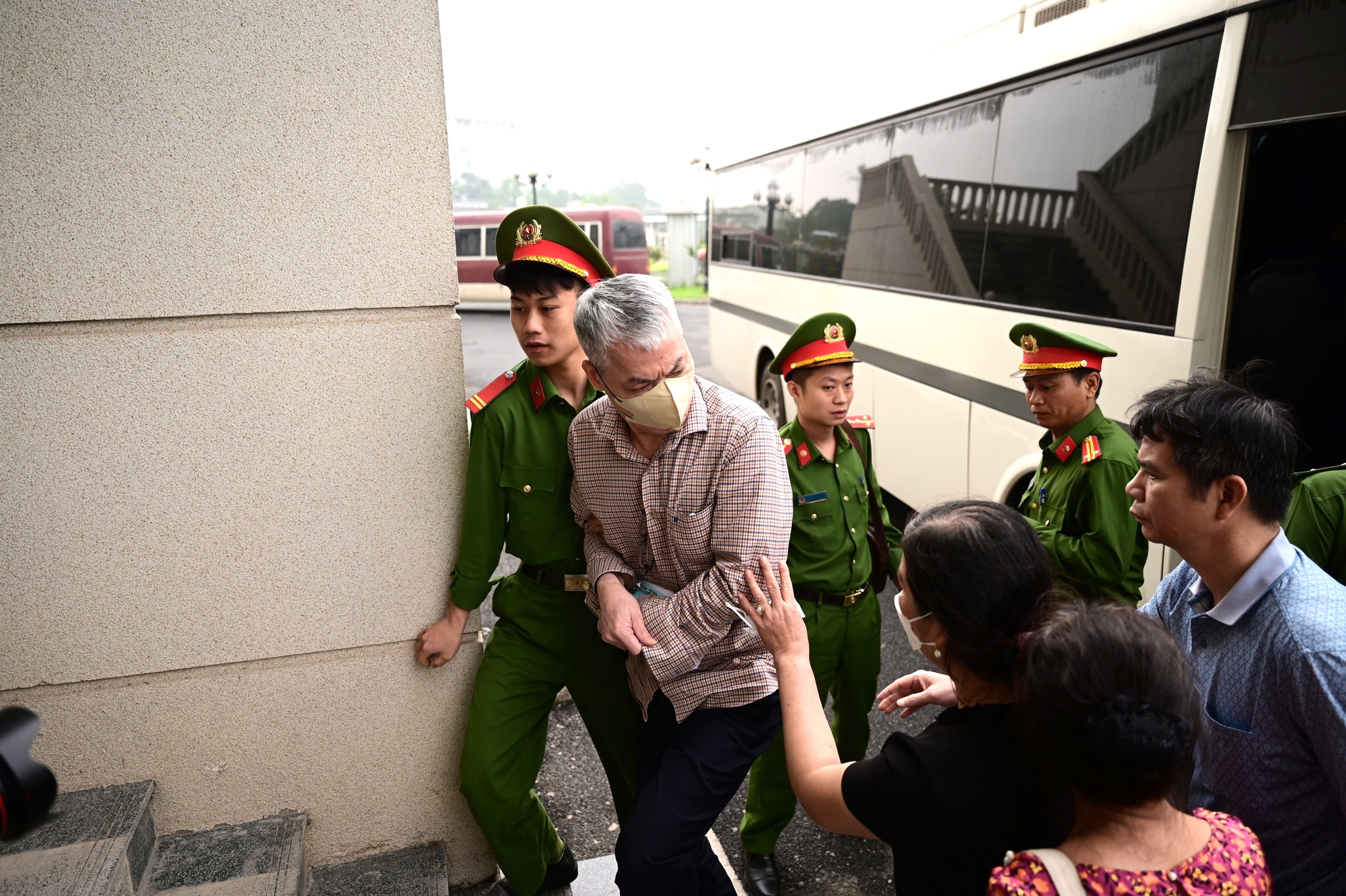 Khoảng 8h cùng ngày, những bị cáo bị tạm giam được cảnh sát dẫn giải đến trụ sở tòa án, trong số này có cựu Thứ trưởng Hoàng Văn Thắng.