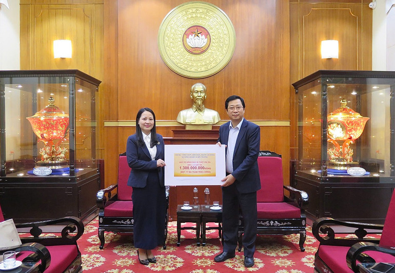 Đại diện Bộ Nông nghiệp và Môi trường trao tượng trưng số tiền ủng hộ 1,3 tỷ đồng.