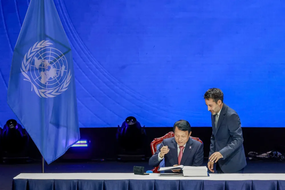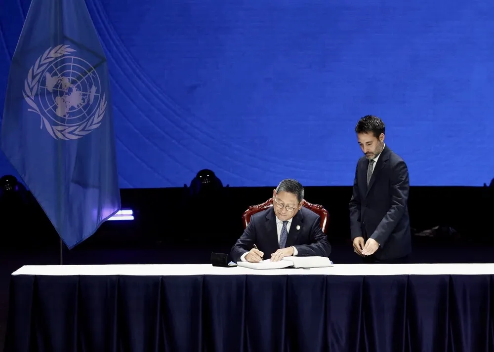 Đại diện Campuchia ký công ước. Ảnh: CTV