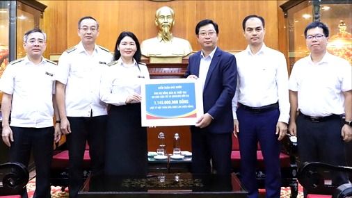 Tổng Kiểm toán nhà nước Ngô Văn Tuấn, Phó Tổng Kiểm toán nhà nước Hà Thị Mỹ Dung và Phó Tổng Kiểm toán nhà nước Bùi Quốc Dũng ủng hộ đồng bào bị thiệt hại bởi cơn bão số 10