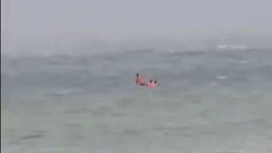 Chiếc thuyền thúng chở 3 người bị sóng gió kéo ra khơi trong bão số 3. Ảnh cắt từ clip.