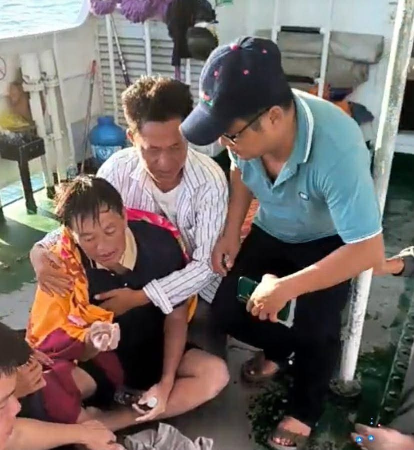 Ông Lê Văn Sanh đã được cứu lên tàu sau 2 đêm trôi dạt trên biển. Ảnh: Tàu An Vĩnh cung cấp.