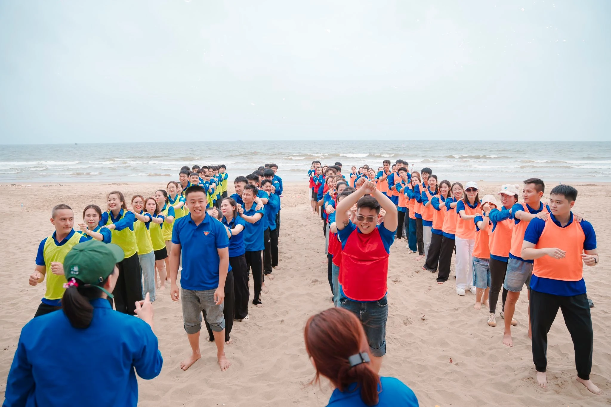 Với không gian lý tưởng tại bãi biển, Đoàn Thanh niên - Hội Liên hiệp Thanh niên phường Sầm Sơn tổ chức các trò chơi Team Building.