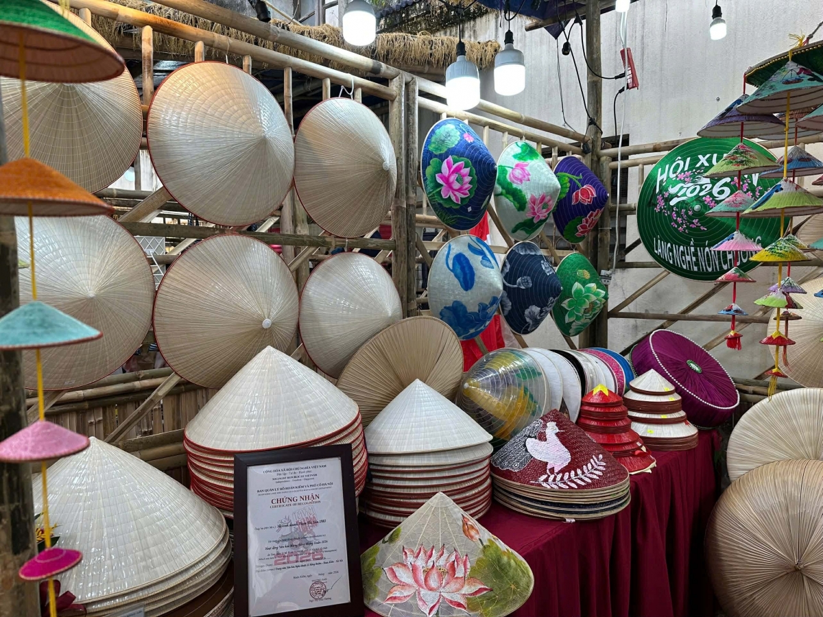 Các gian hàng viết thư pháp, trưng bày sản phẩm thủ công mỹ nghệ, sản phẩm làng nghề truyền thống với nhiều mặt hàng đa dạng như quạt Chàng Sơn, ngựa sơn mài… hay những món bánh kẹo, thức quà đặc trưng của Hà Nội được sắp đặt hài hòa trong một không gian mang đậm sắc xuân.