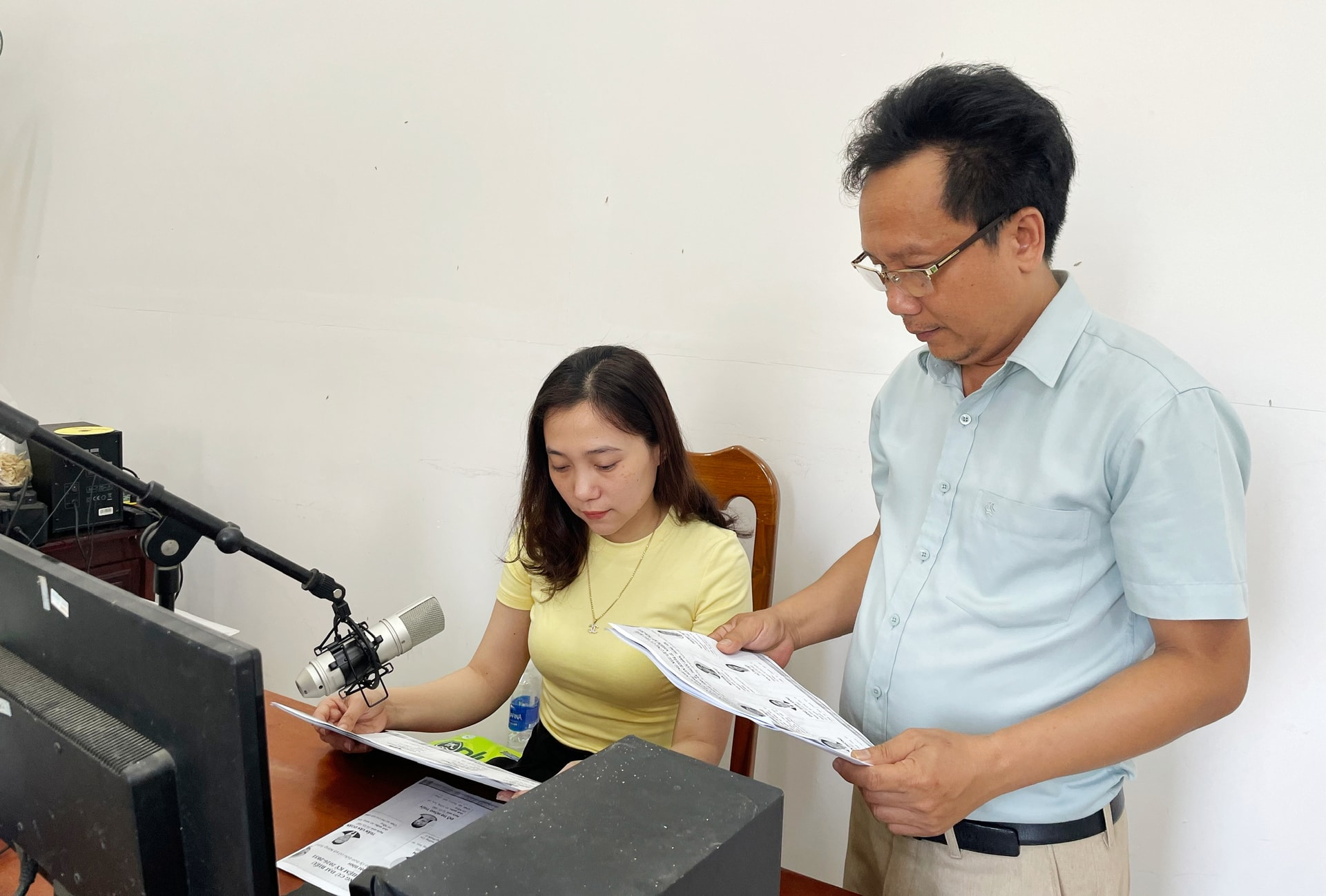 Trung tâm Cung ứng dịch vụ sự nghiệp công xã Nông Sơn xây dựng tiểu phẩm phát thanh để tuyên truyền trên hệ thống loa đài. Ảnh: PHAN VINH