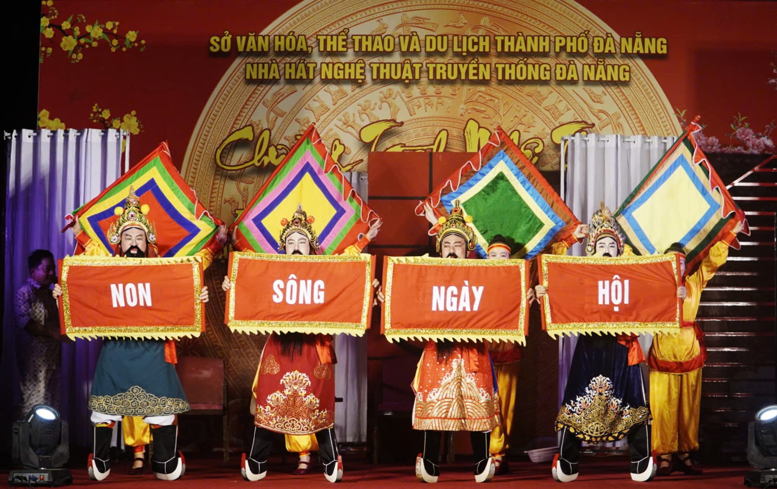UBND xã Quế Phước phối hợp Nhà hát Nghệ thuật truyền thống Đà Nẵng tổ chức chương trình tuyên truyền bầu cử ngày 28/2. Ảnh: PHAN VINH