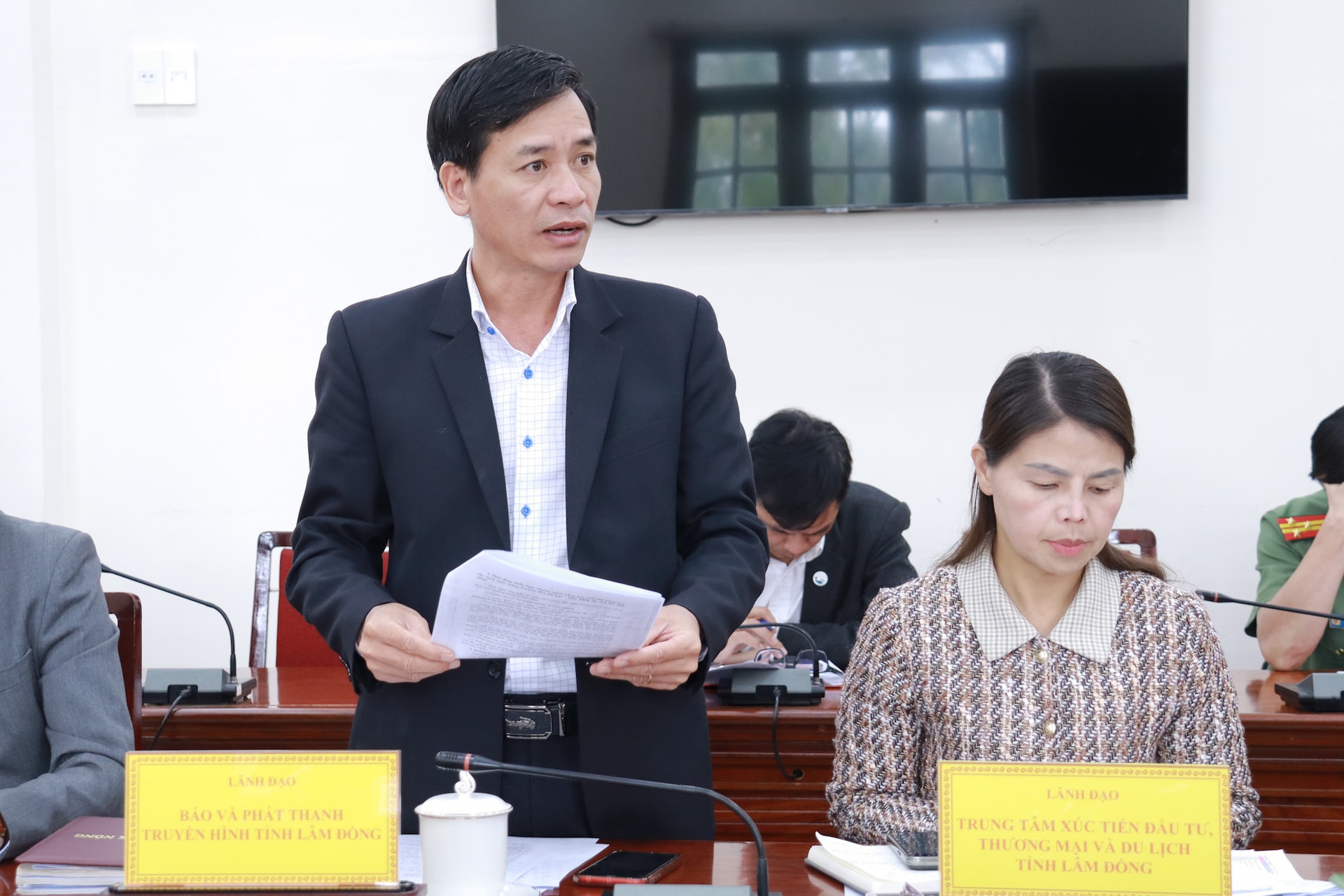Phó Giám đốc Báo và Phát thanh, Truyền hình Lâm Đồng Nguyễn Văn Hải đóng góp ý kiến tại cuộc họp