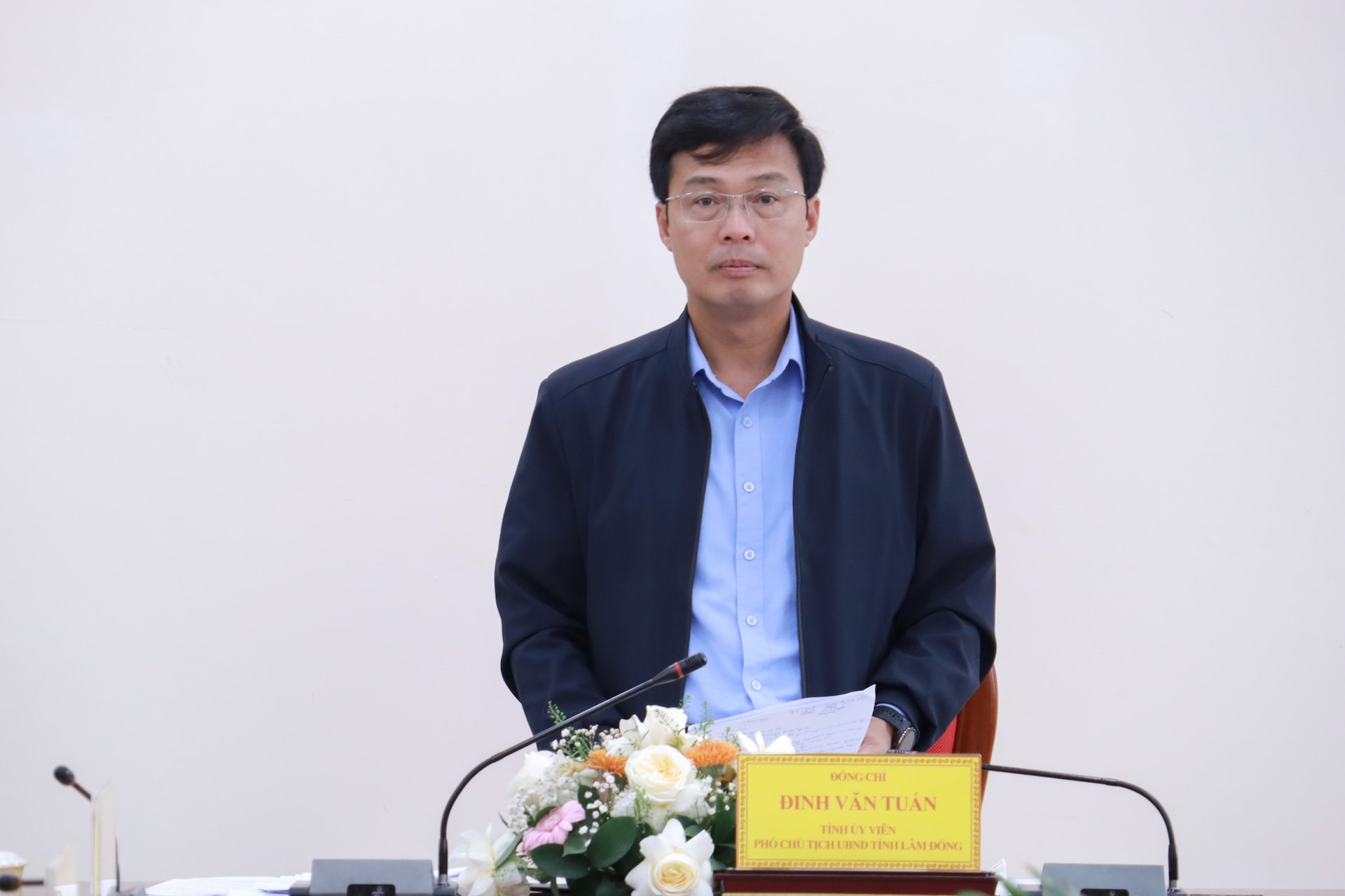 Đồng chí Đinh Văn Tuấn, Tỉnh ủy viên, Phó Chủ tịch UBND tỉnh Lâm Đồng phát biểu kết luận cuộc họp