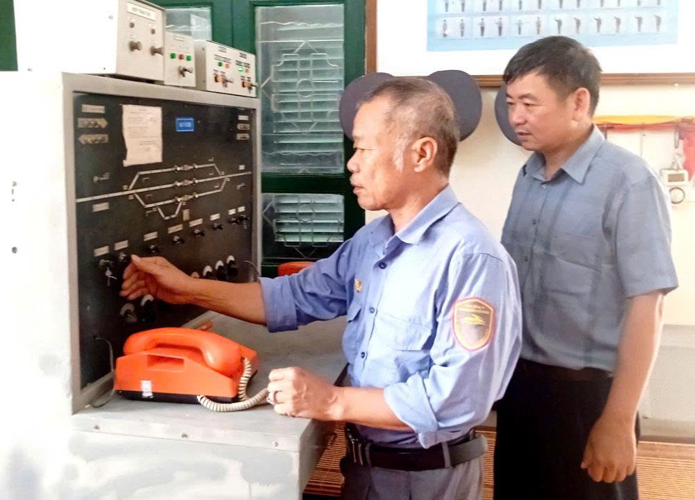 Cán bộ Công ty cổ phần Thông tin tín hiệu Đường sắt Bắc Giang kiểm tra thông tin tín hiệu tại ga Từ Sơn.