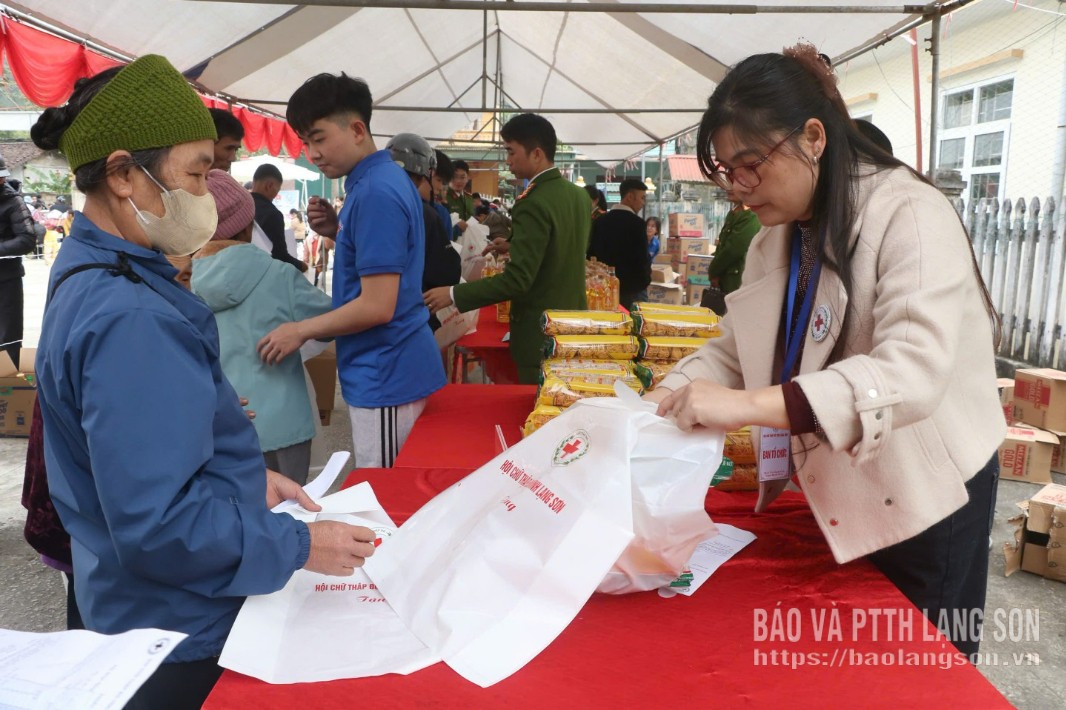 Theo đó, tại xã Bình Gia, Ban Tổ chức đã tổ chức Chợ Nhân đạo, trao 300 suất quà cho 300 hộ nghèo, hộ có hoàn cảnh khó khăn thuộc 2 xã Bình Gia và Thiện Thuật (mỗi suất quà trị giá 800 nghìn đồng, gồm: dầu ăn, nước giặt, nước rửa chén, mỳ trứng, gạo, chăn, màn, quần áo, bánh…); trao 15 suất học bổng cho 15 học sinh vượt khó học giỏi thuộc 2 xã Bình Gia và Thiện Thuật (mỗi suất trị giá 2,7 triệu đồng); tổ chức 2 gian hàng “0 đồng” (gồm mỳ tôm, sữa, khẩu trang, dầu gội, dầu xả, quần áo cũ và mới…) và khám bệnh, cấp thuốc miễn phí, cắt tóc miễn phí phục vụ người dân có nhu cầu. Đoàn Thanh niên Phòng Hậu cần, Công an tỉnh cũng hỗ trợ thêm 40 suất quà cho các hộ có hoàn cảnh khó khăn thuộc 2 xã, mỗi suất quà trị giá 500 nghìn đồng (gồm chăn, ga).