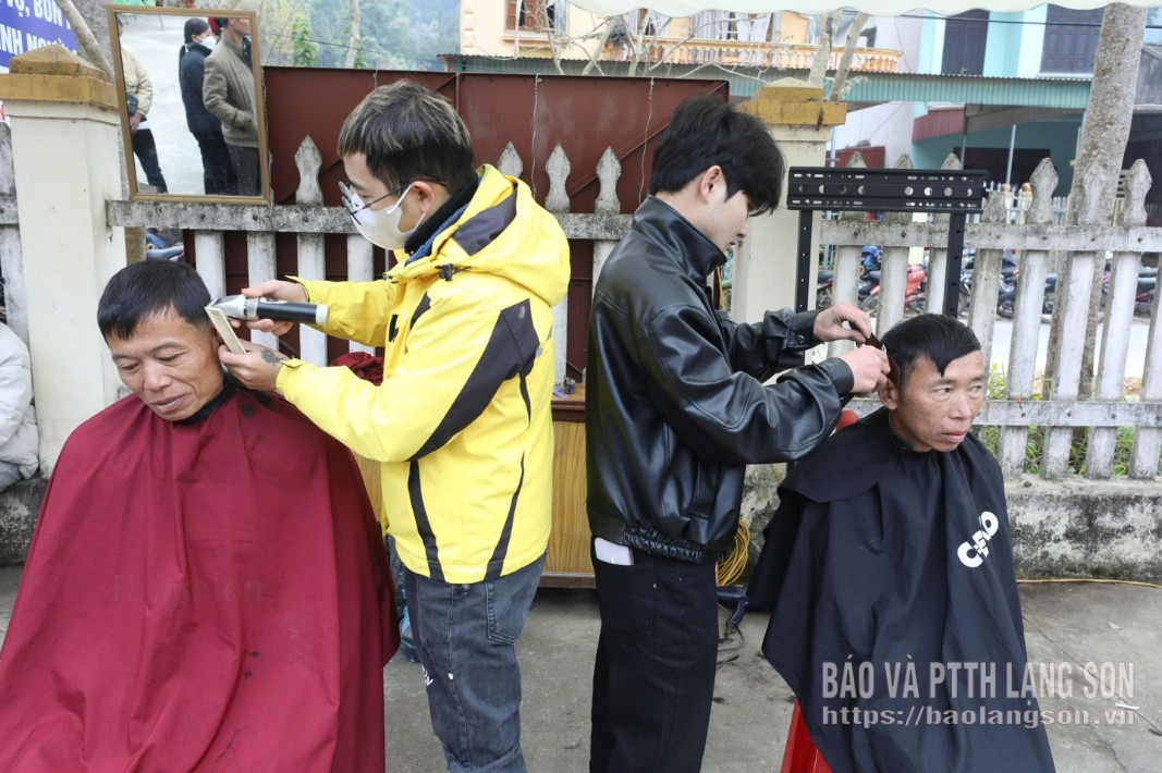 Người dân tham gia cắt tóc miễn phí tại chợ Nhân đạo
