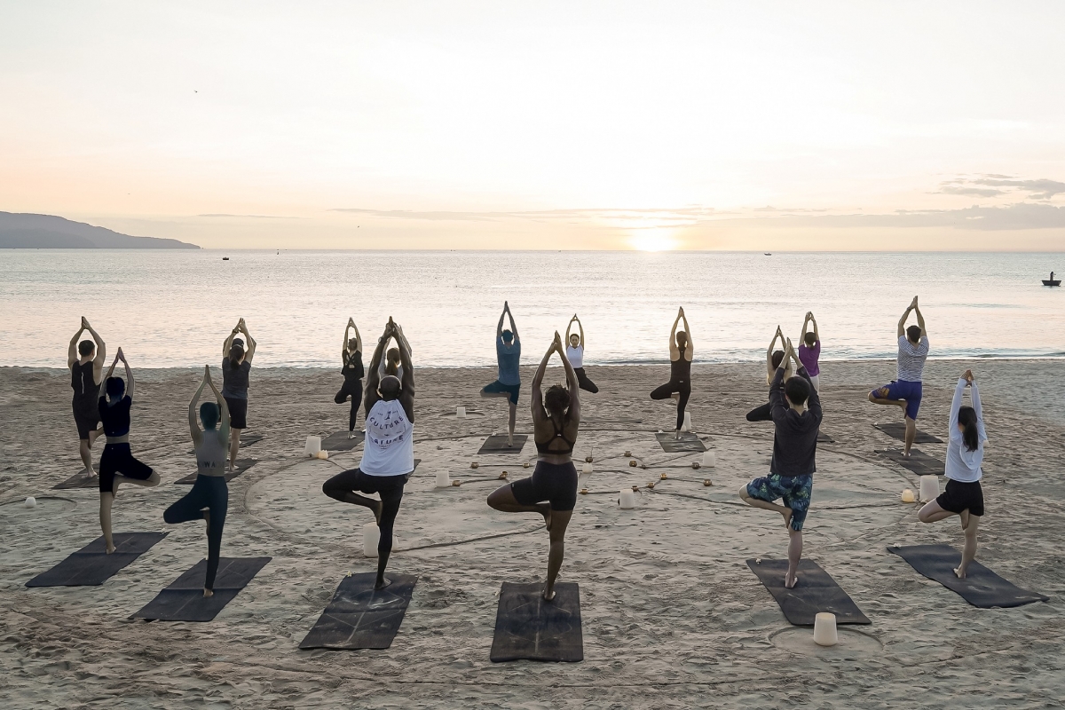 Tập yoga trên bãi biển Đà Nẵng. Ảnh: TIA Wellness Resort