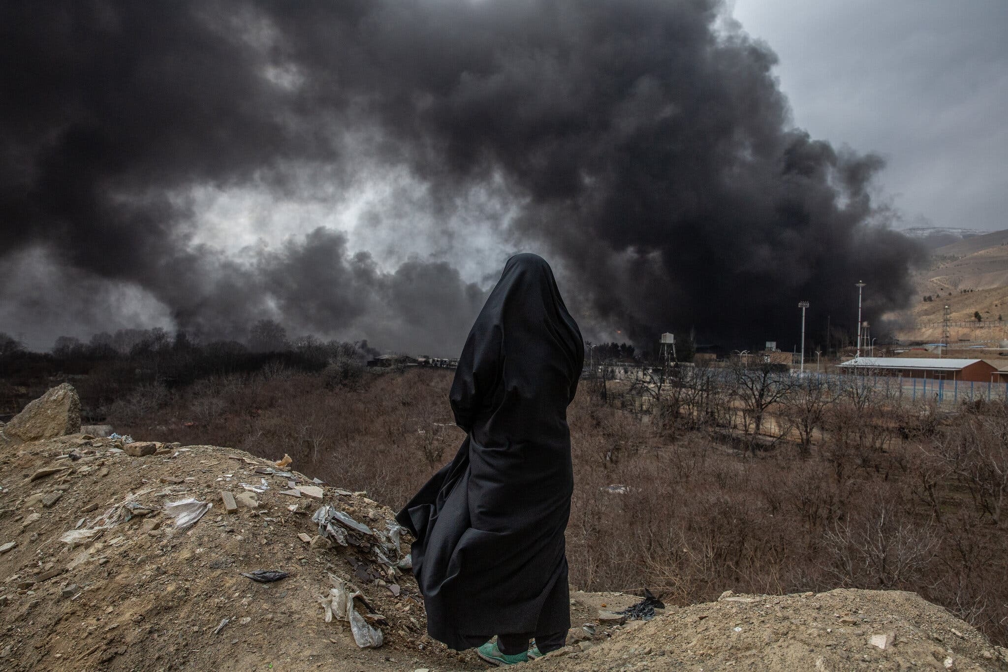 Hiện trường sau cuộc không kích của Mỹ và Israel nhằm vào cơ sở lưu trữ dầu ở Tehran, Iran, ngày 8/3. Ảnh: New York Times.