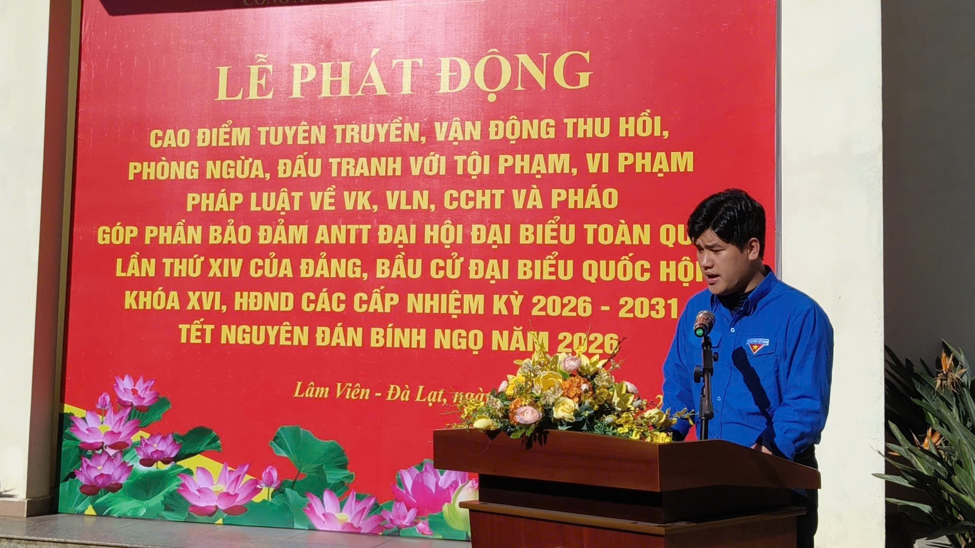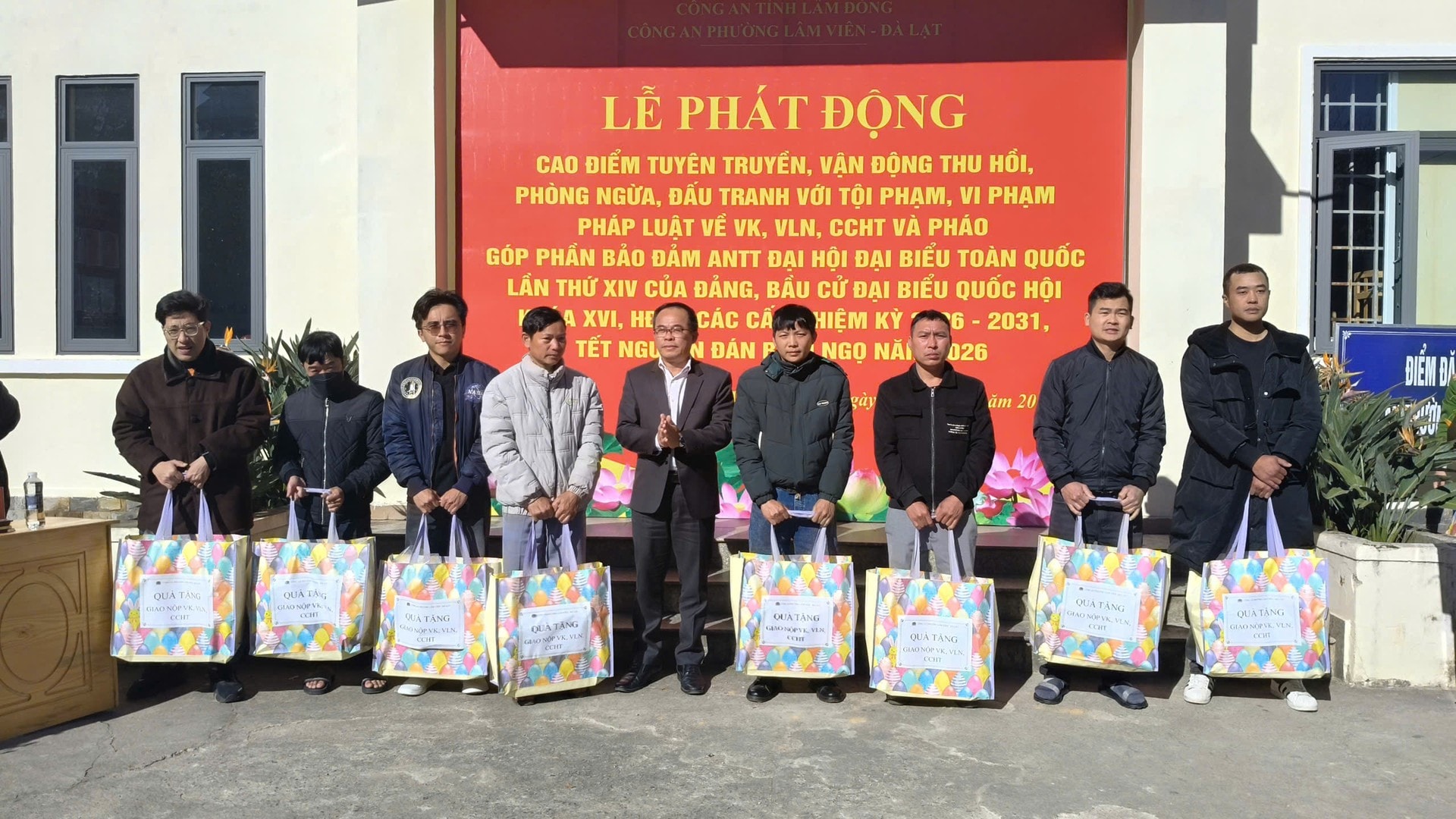 Sáng ngày 10/01, Công an phường Lâm Viên (Đà Lạt) đã tổ chức Lễ phát động Cao điểm tuyên truyền, vận động thu hồi, phòng ngừa, đấu tranh với tội phạm và vi phạm pháp luật về vũ khí, vật liệu nổ, công cụ hỗ trợ và pháo. Đây là hoạt động trọng tâm nhằm bảo đảm an ninh trật tự cho Đại hội Đại biểu toàn quốc lần thứ XIV của Đảng, Bầu cử đại biểu Quốc hội khóa XVI, HĐND các cấp nhiệm kỳ 2026 - 2031 và Tết Nguyên đán Bính Ngọ 2026.