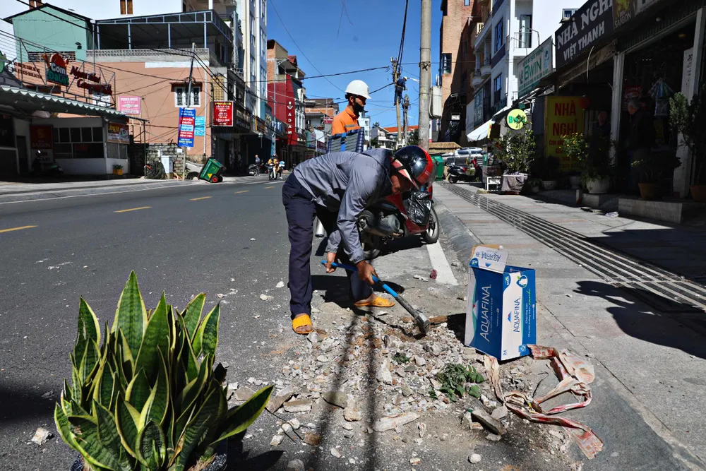 Theo Đội Quản lý điện Đà Lạt, đơn vị đã triển khai 15 nhân viên cùng phương tiện xe cẩu để hỗ trợ đơn vị thi công là Công ty TNHH Hưng Nguyên thực hiện thu hồi trụ điện đang vướng trên lòng lề đường để đảm bảo an toàn giao thông trên tuyến đường Bùi Thị Xuân.