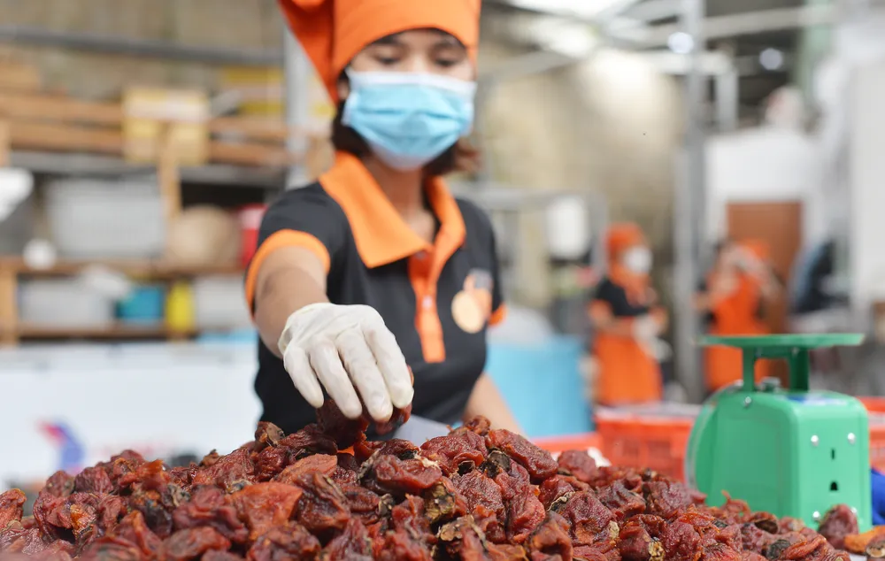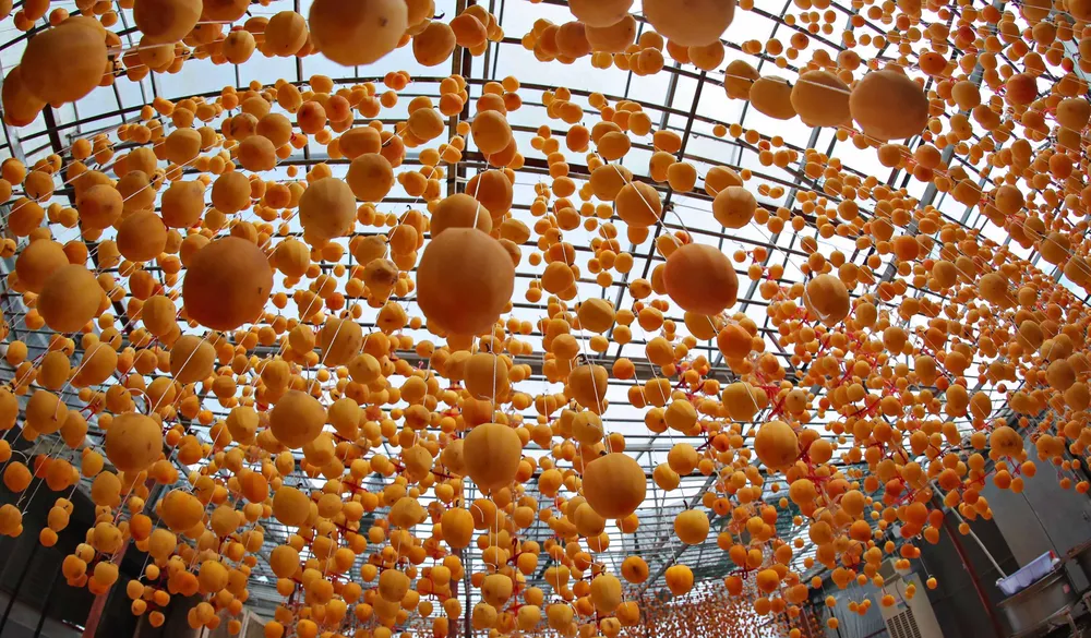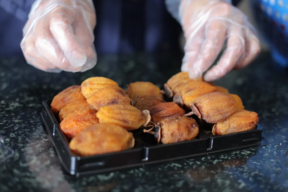 Sau hơn ba tuần, hồng treo gió khô tự nhiên chuyển sang màu nâu hổ phách, dẻo thơm và ngọt lịm. Đây là món quà "đặc sản mùa thu" để du khách lựa chọn mua làm quà khi tới Đà Lạt. Ảnh: Chính Thành