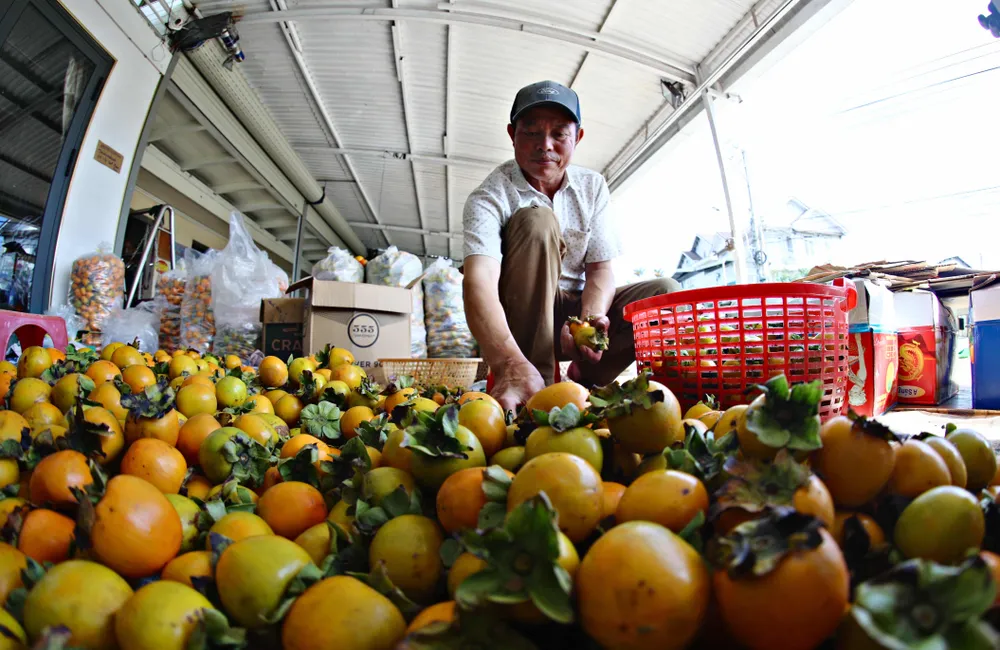 Mùa hồng ở Đà Lạt bắt đầu khoảng tháng 9 đến hết tháng 12. Hiện một số loại hồng đã thu hái xong nhưng còn nhiều loại chín và thu hoạch từng đợt từ nay tới cuối năm như: hồng trứng lốc, vuông đồng, vuông tám hải, trứng láng. Ảnh: Chính Thành