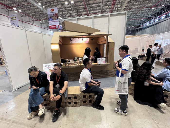 Người tham quan còn chú ý đến kính xuyên sáng thông minh cùng hệ vách Danpatherm module tiền chế và tấm Danpalon Microcell kháng UV 99,9% tối ưu cho khí hậu nhiệt đới. Hoặc kết cấu vách, tường làm bằng giấy dó mộc mạc, thiết kế lấy cảm hứng từ bản sắc Việt như rừng trúc, nhà tre, trong khi các gian hàng khác lại nổi bật với việc tích hợp công nghệ vào thiết kế.