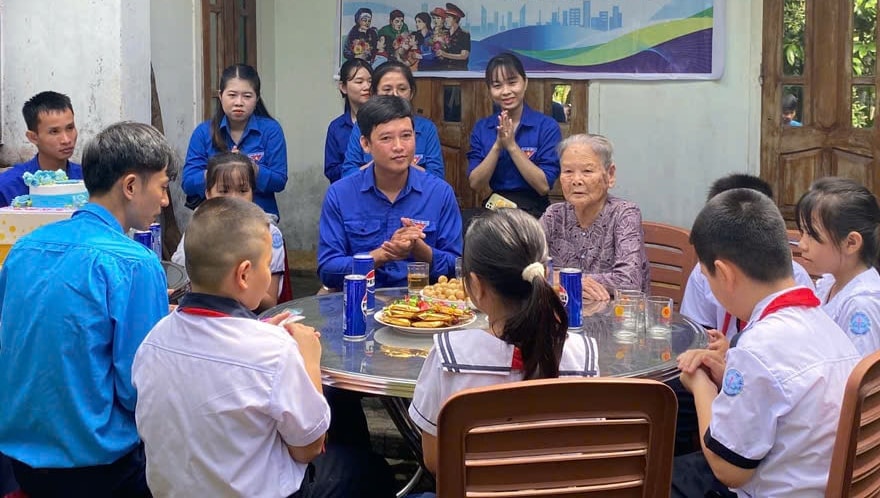 "Chúng con luôn bên mẹ" là mô hình "dân vận khéo" của tuổi trẻ Đà Nẵng. Trong ảnh: Tuổi trẻ xã Thạnh Bình lắng nghe những câu chuyện thời kháng chiến do Bà mẹ Việt Nam anh hùng Phan Thị Tỵ kể. Ảnh: MẾN NGUYỄN