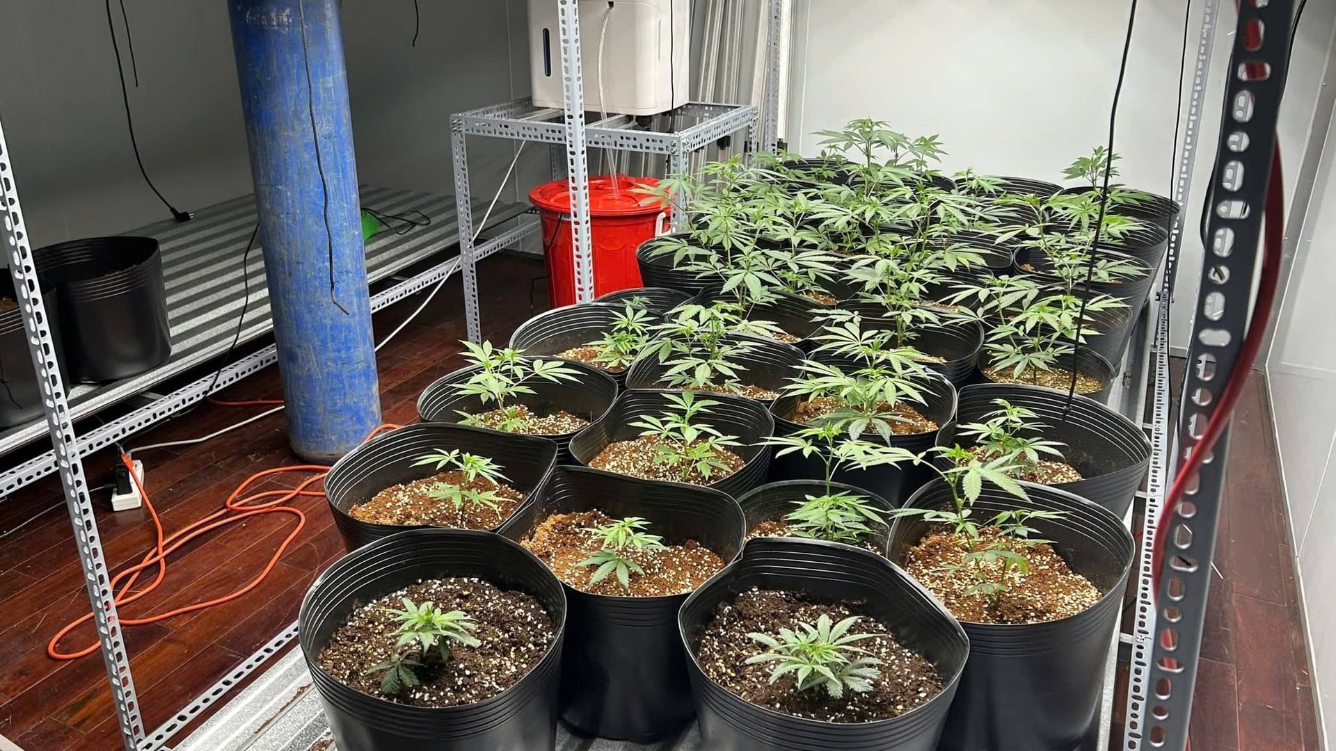 Tiếp tục kiểm tra căn phòng phía sau ngôi nhà, lực lượng Công an phát hiện 51 cây cần sa đang được nuôi trồng tại đây, bố trí trong không gian kín với hệ thống chiếu sáng, tưới nước phục vụ việc trồng, chăm sóc cây cần sa.